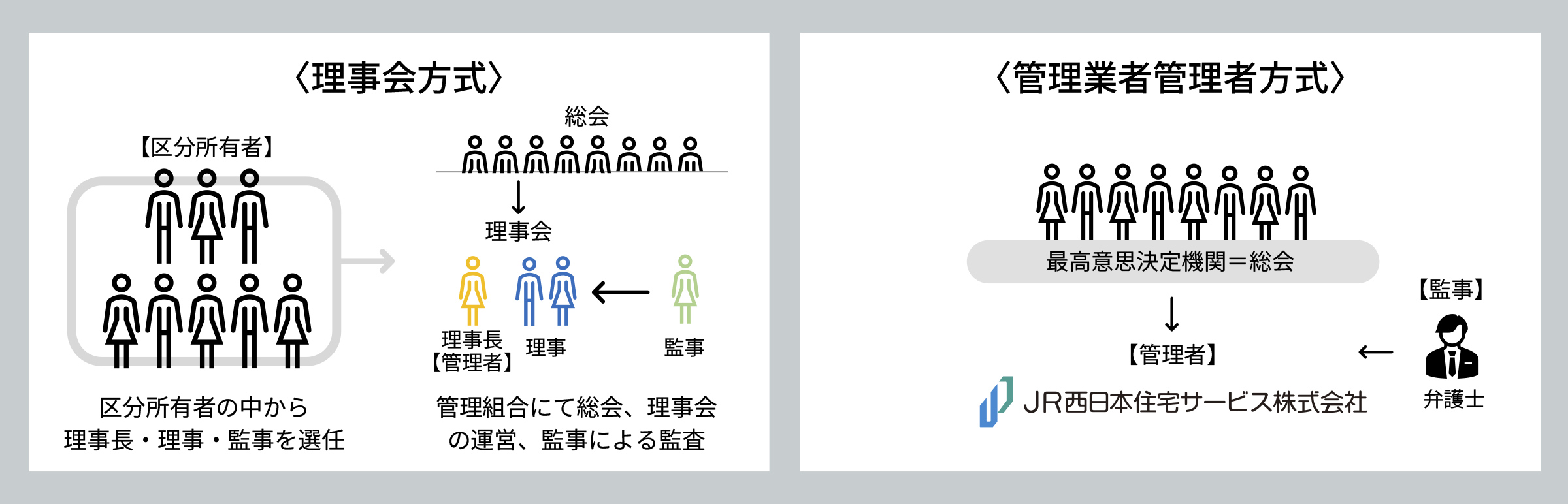 管理組合の管理者業務について、日常の管理を行う管理組合の管理者業務について、日常の管理を行う管理業者が「管理者」として直接担う方式です。従来のように住民の中から理事長を選出する必要がなく、管理組合の運営そのものをプロに任せることができます。